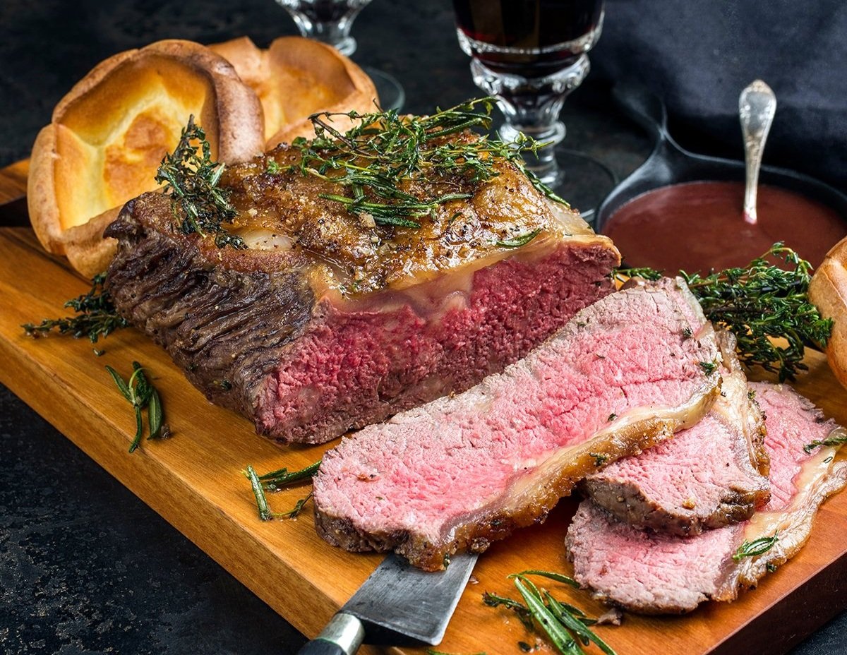 Prime rib-eye or Lamb Shank with Yorkshire pudding, roasted veggies, and proper gravy. A British tradition, done right.