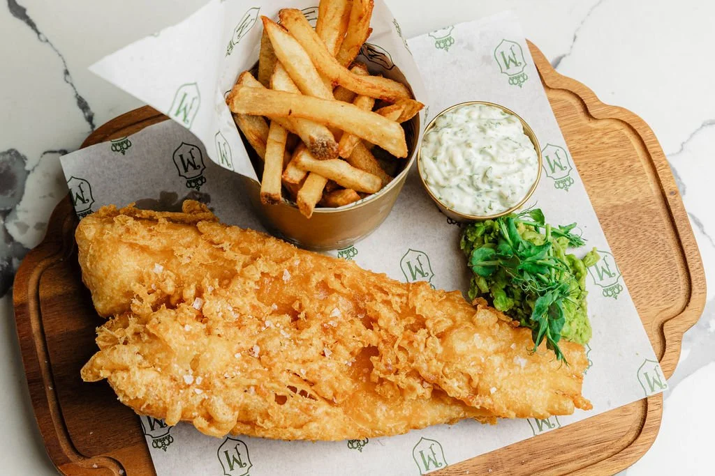 Elevated pub fare meets British-Indian flavors. 25-foot ceilings, cozy vibes, and the best fish & chips this side of the Atlantic.